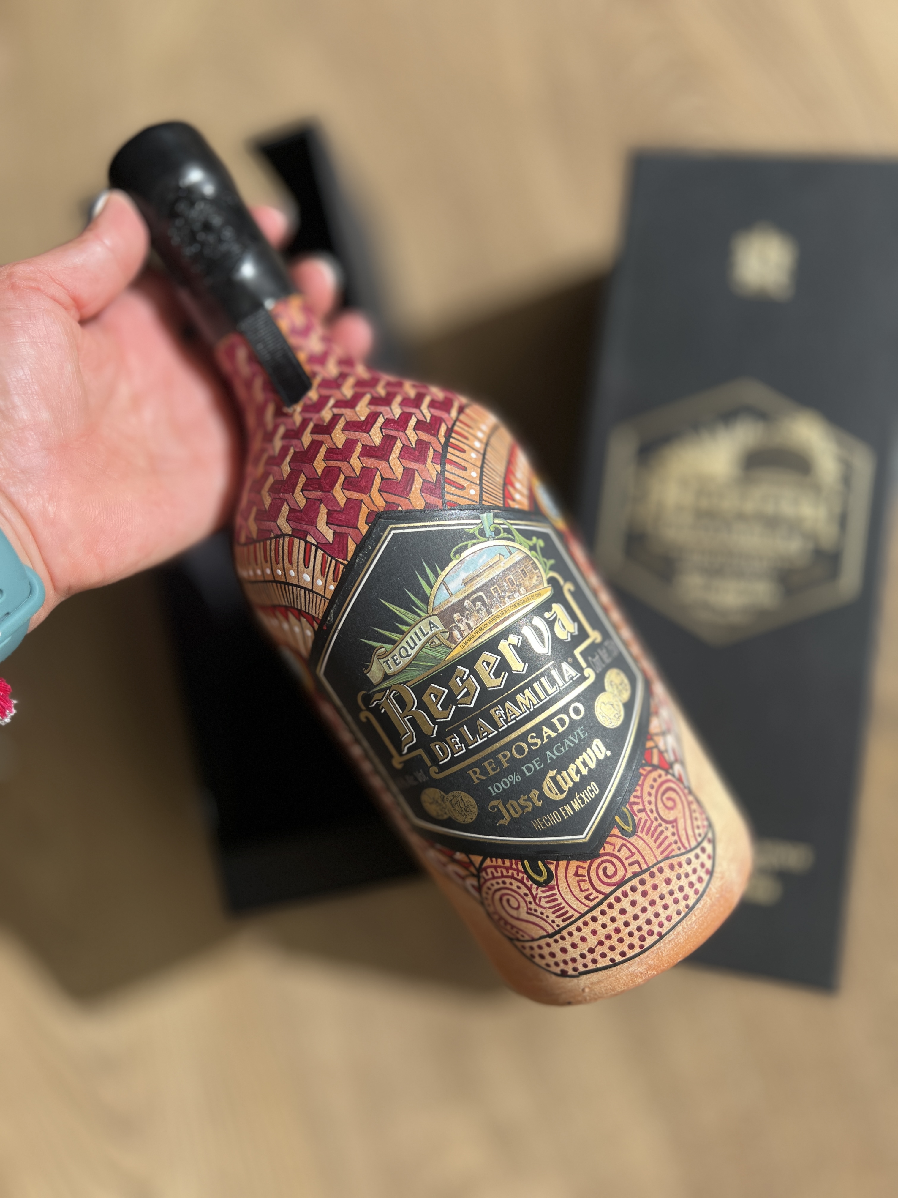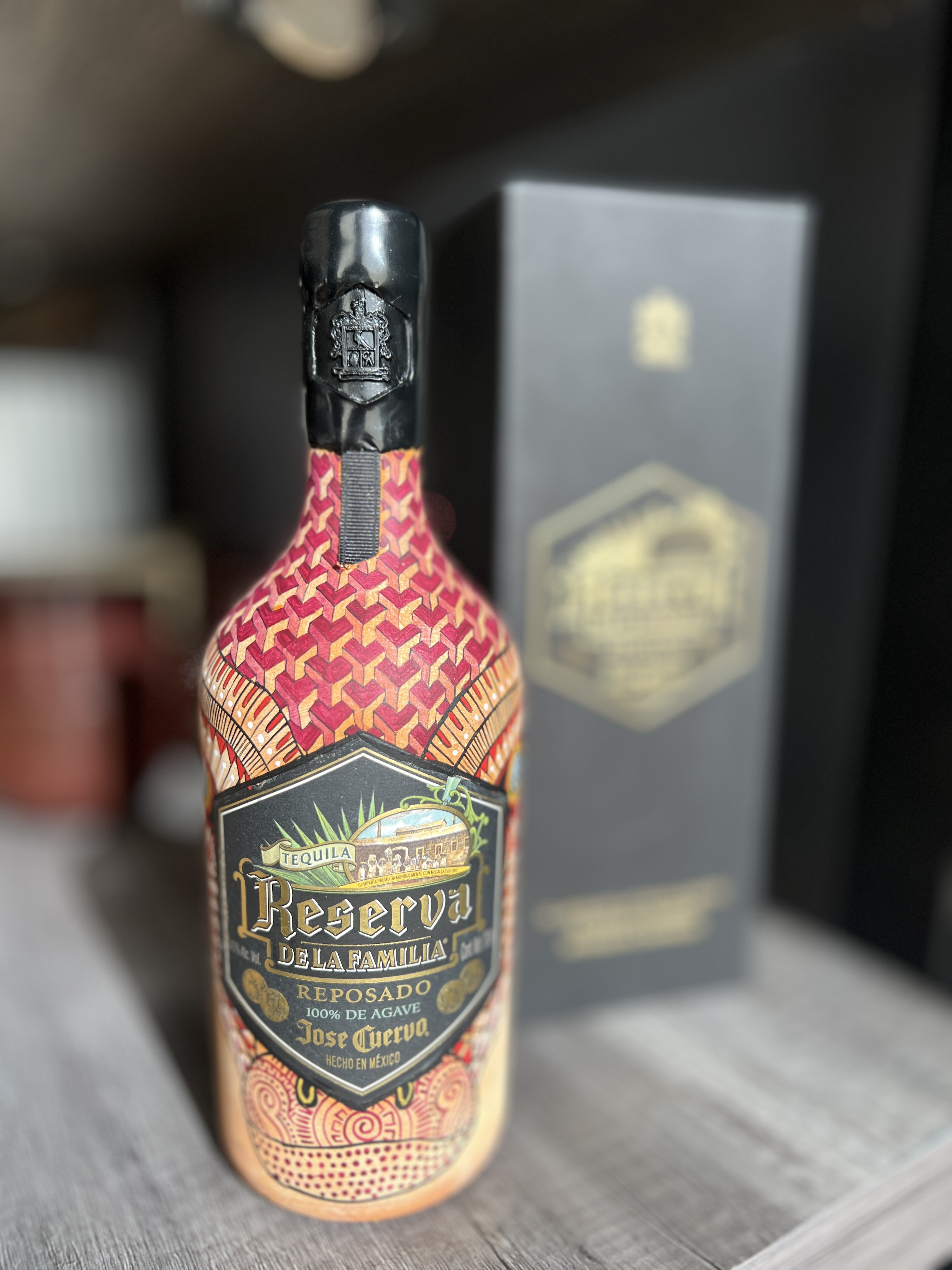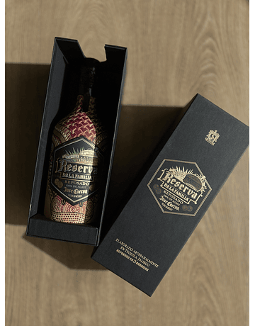 TEQUILA "RESERVA DE LA FAMILIA" REPOSADO 750ML INTERVENIDA POR ARTESANOS DE ALEBRIJES DE LA COMUNIDAD DE SAN MARTIN TILCAJETE, OAXACA , EDICIÓN ESPECIAL 2024.