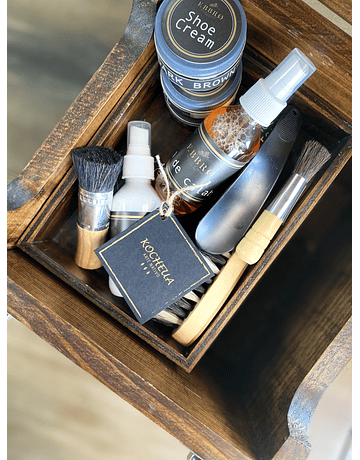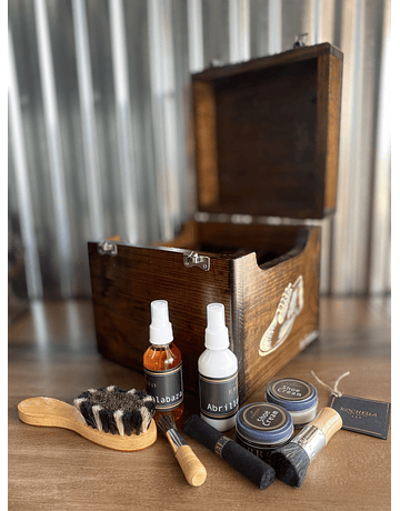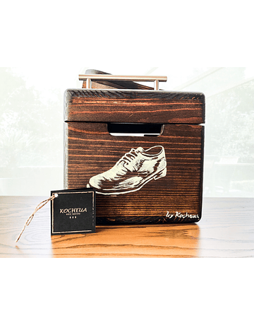 SHOE SHINE KIT elaborado en CEDRO BLANCO intervenido por ARTISTAS EMERGENTES.